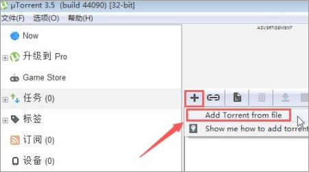 4、点击“Add Torrent from file”,中文意思就是添加种子文件;