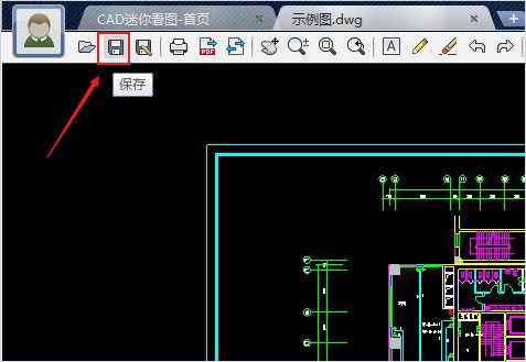 1、首先,进入到图纸的编辑界面中,在制作完图纸设计之后需要进行保存操作,这是做完图纸的第一个工作,点击上方功能栏目中的“保存”按钮;