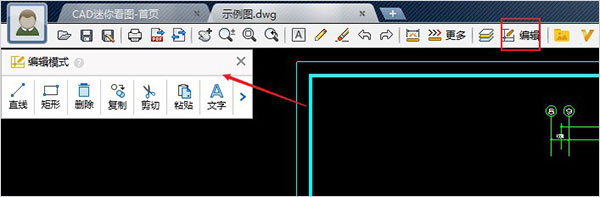 1、在CAD图纸的编辑界面中,点击编辑即可进入到字体的编辑界面中;