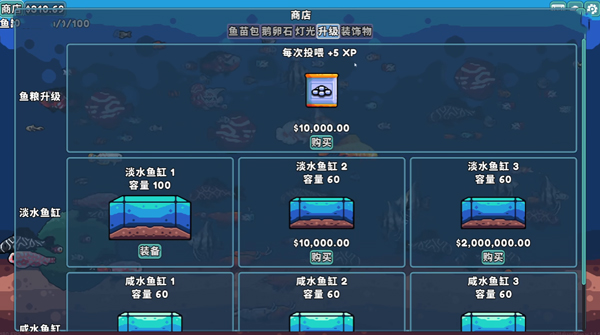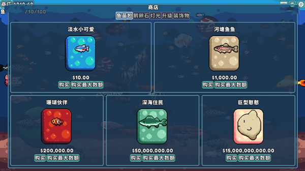 3、进入游戏如图,玩家可在商店购买鱼苗;