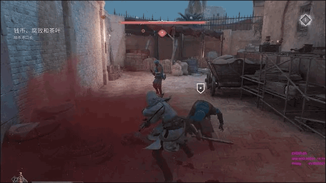 自《刺客信条:启示录》开始就逐渐成熟的道具系统也在本作发挥了重要作用。玩家可以装备飞刀、烟雾弹、噪音弹等道具,对敌人直接使用,或是触发一些环境陷阱。比如我们可以一飞刀射落重物砸死下方的敌人,或是砍翻市集路边的香料袋,让敌人失去视野,一击即可刺杀。
