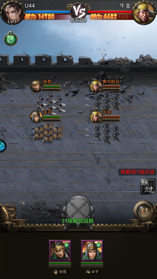 3、三国英雄尽归麾下,自由搭配不受限制,特色技能策略百变。