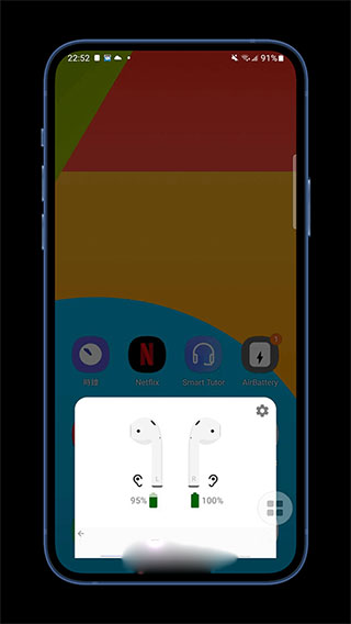 然后 Android 屏幕底部的小窗口就会显示 AirPods 电量,分别会显示左耳及右耳的目前剩余电量