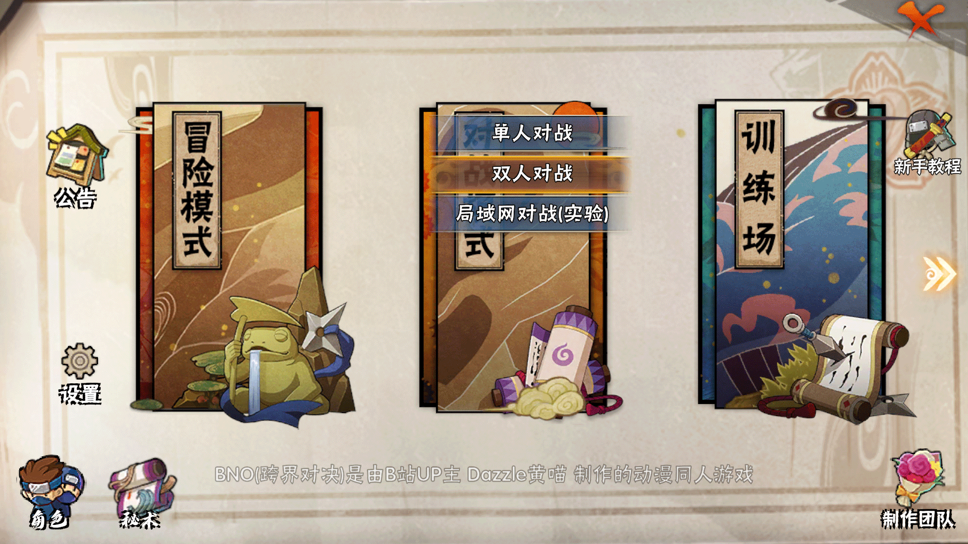 《BNO跨界对决》的画面采用像素风格,场景设计还原了动漫的经典元素,带来视觉享受。多人联机功能也让玩家能与好友组队或对战,体验竞技乐趣。