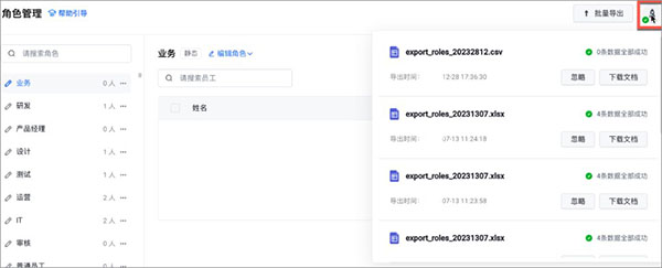 全部角色:将当前角色管理列表中的所有角色导出至本地。