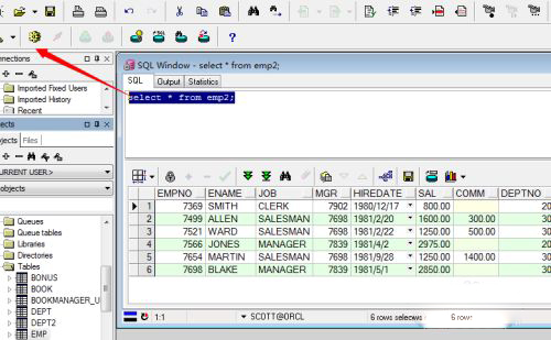 在对象浏览器选择“my object”,这里边就是SCOTT(当前登陆的用户的所有object)