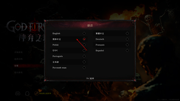 3、然后选择语言为简体中文,最后重启游戏即可。