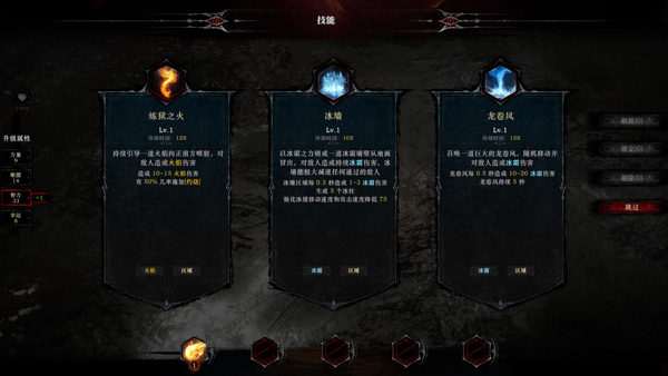 5、击败怪物后会掉落经验,拾取后可提升等级,每次升级可选择一项技能;