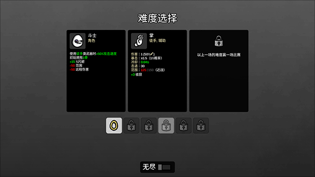 众所周知,土豆兄弟的很多远程武器都比较强力,堪称版本之子。但在他们的光芒下,有很多武器比如小刀、雷光刀、雷剑,虽然他们的强度没有版本之子那么高,但是他们也很好玩,也有各自的魅力,也值得被大家尝试。角斗士就可以作为尝试各种武器的平台(因为不能拿远程武器,还需要拿独特武器)。