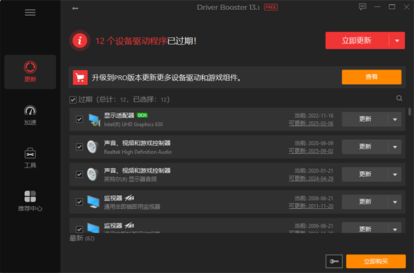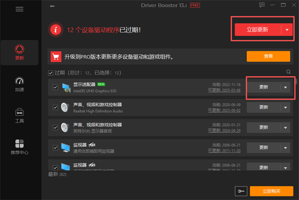 点击 立即更新 在右上角更新所有选定的驱动程序。