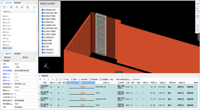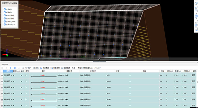 支持按地连墙智能布置导墙,精准计算导墙土建及钢筋工程量,支持钢筋三维。