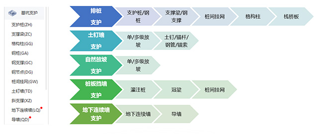 基坑支护业务电算化,构建标准支护构件库,满足不同支护类型;