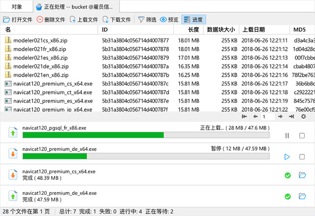 在数据库中创建多个存储桶,并执行并行同步的文件上载和下载。