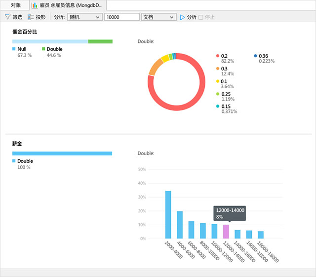通过简单直观的用户界面分析文档并显示集合中丰富的结构。Navicat for MongoDB提 MongoDB模式的图形视图,使您可以根据频率、类型以及离群值快速可视化、探索和理解 MongoDB数据。