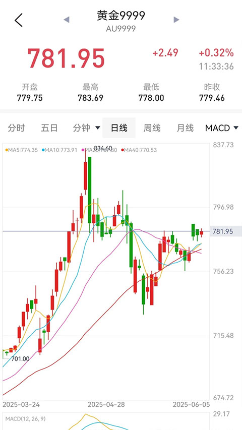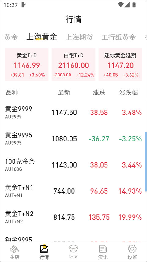 2、app还可以查看上海黄金交易所现货、期货黄金交易数据