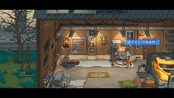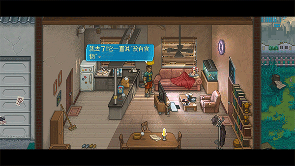 6、观看完剧情之后,就可以自由操作了,开局我们会在自己家,首先要去找点食物,点击售货机可能会有点食物