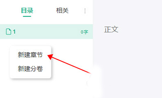 3、在目录区域点击右键,选择新建章节,然后就可以在正文区创作了。
