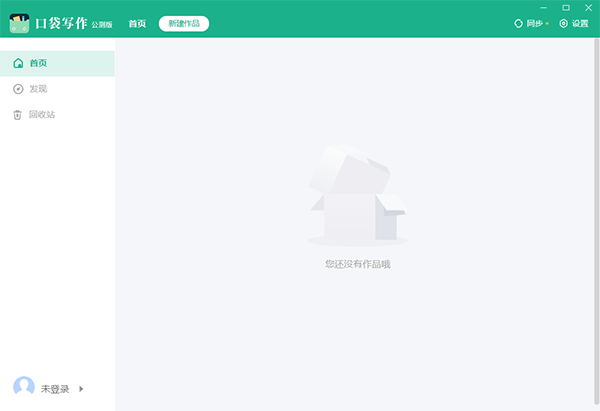 1、首先打开口袋写作,进入软件之后点击上方的新建作品;