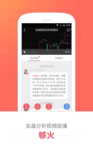 1、【股市直播】实战高手实时解读股市政策,重要事件,预测市场趋势;2、【百宝箱】牛人播主实时分享独家投资秘籍,发掘潜力牛股;