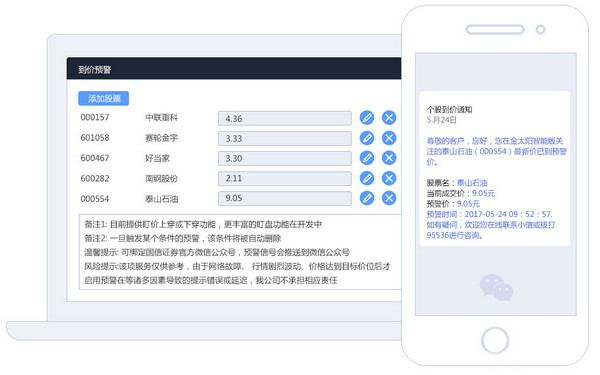 多股到价提醒,关注国信官微并验证交易账号还可在微信接收提醒。