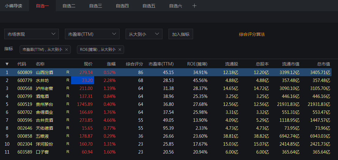 对比分析功能直击企业经营状况,从市场表现、盈利能力、现金能力、议价能力、管理能力、偿债能力等方面进行综合评分,通过排序的方式,筛选出各行业内竞争力强、适合长期持有的优质股票,构建投资组合。还提供适应银行类股票的银行专项指标。