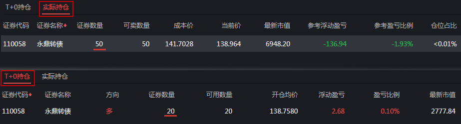3、T+0持仓列表