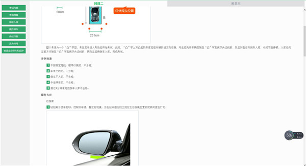 6、点击科目二三,里面包含科目二科目三考试目的,考试内容,评判标准,倒车入库,侧方停车,超车,回车,起步等,