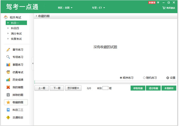 在练习中收藏的试题会在这里显示。可移除某题收藏或清除所有收藏的试题。