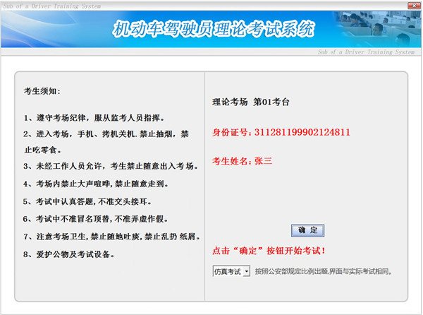 3、点击仿真考试,即可进入真实的模拟考试,点击确定,即可开始仿真模拟考;