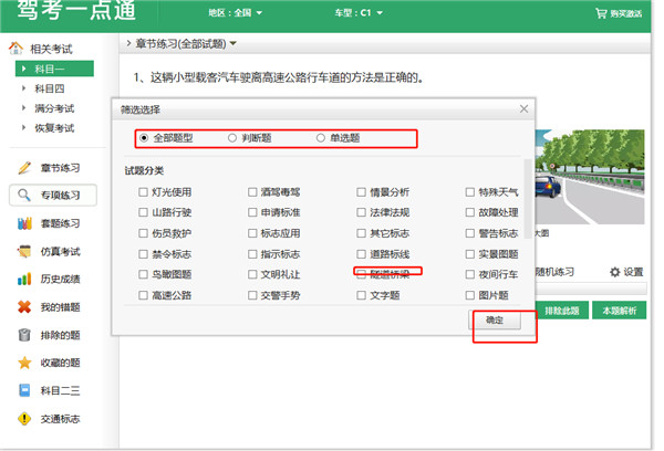 科学系统的练题模式,顺序练习、章节练习、专项练习、图标技巧.一款针对机动车驾驶员理论考试(驾考一点通科目一、驾考一点通科目四)。 学车考照的整个过程精心设计的一套功能全面、性能优异,操作简洁的学车助考软件 。适用于C1、A1、A2、B1、B2,小车,客车,货车,摩托车。