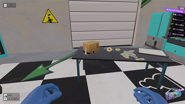 5、前面只需要对着货币按鼠标左键手机,然后对着胶带按E,之后放进箱子里。