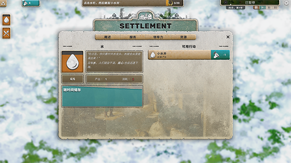 3、战略资源管理:玩家需要仔细计划资源的使用,包括食物、水、能源等,保证幸存者的基本生活需求,同时还要考虑长远的发展和扩大。
