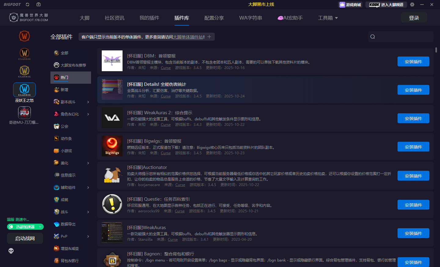大脚准备了游戏必备的实用插件包,您无需费心即可享受更好的游戏体验。