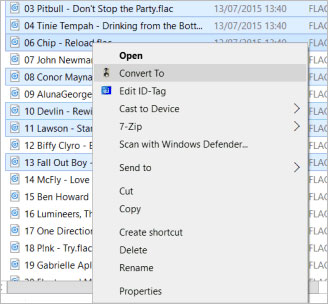 在资源管理器中选择音频文件,右键单击,转换为