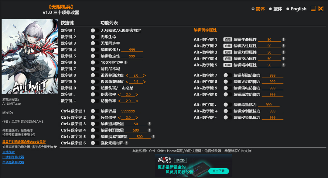 3、游戏版本更新有时会使修改器项失效,建议使用对应游戏版本或使用最新版本修改器。
