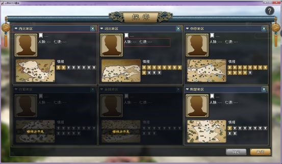【人事】-【探索】首回合是必需要派人去做的,拍【人脉】和【仁德】比较高的去效果好,不但可以找到在野武将还可以寻宝。早期玩家只能探索自己占领城市的相关区域,需要情报力不断扩散后,才能开启新的城市和新的区域。