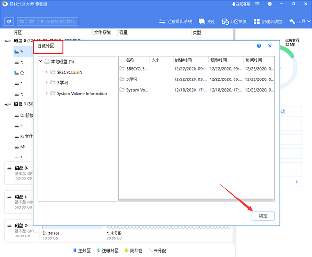 4、双击浏览分区内容,判断是否为需要恢复的分区。