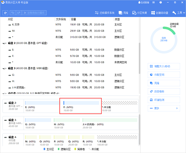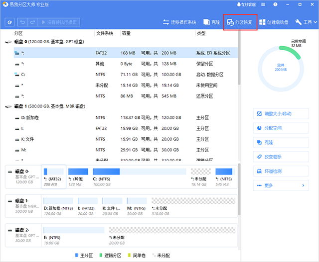 除了基本的分区管理外,该工具还具备强大的数据保护和恢复功能。通过内置的“分区恢复向导”,用户可以轻松找回因误删、系统故障或病毒感染导致丢失的分区。此外,软件支持克隆磁盘和分区,无需重新安装Windows即可完成数据迁移和升级。