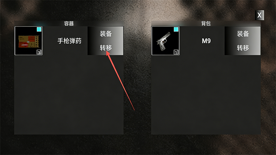 3、点击【转移】就可以将仓库内的物资收进背包里