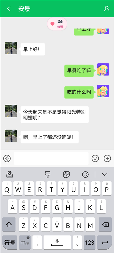 3、随着玩家聊天的次数会增加用户的好感度,现在可以看见为26。