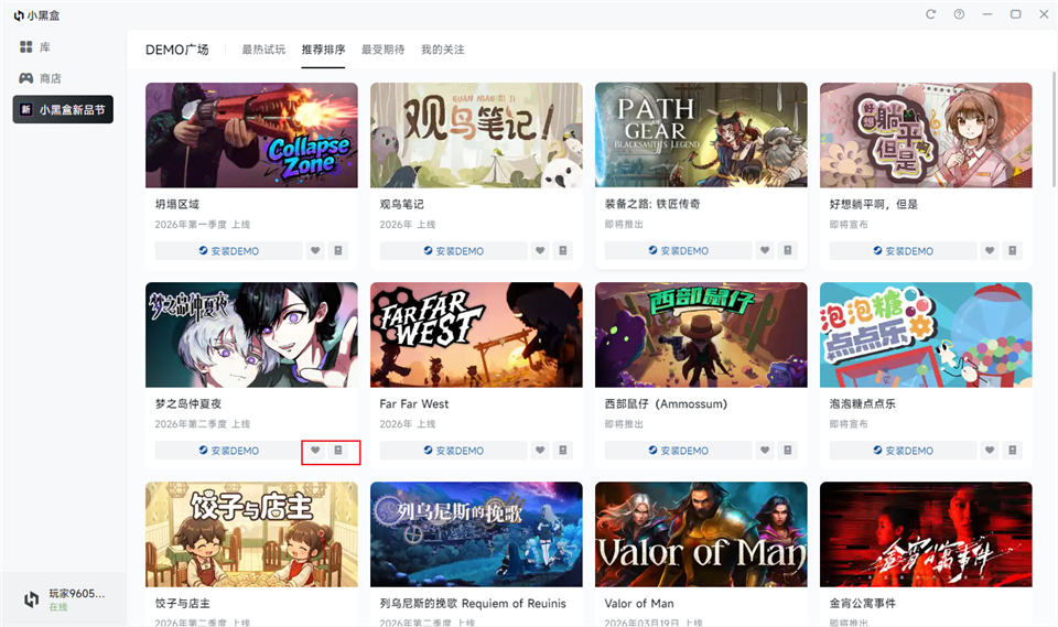 4、在新品节中还有各种即将上线的游戏,你可以添加关注或添加心意单,游戏上线就收到提醒。