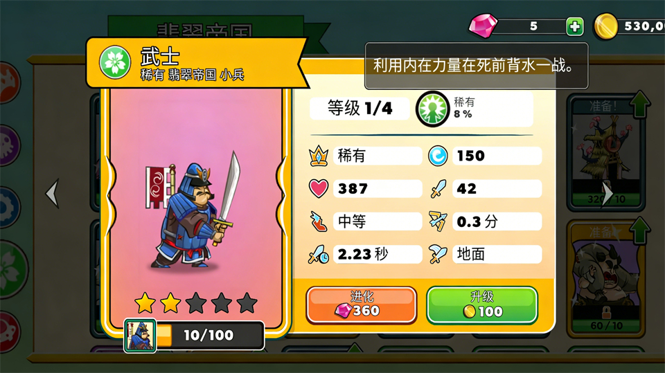 游戏里有很多有趣的派系和英雄,比如“伍仁”能推敌军、“风神”会晕眩敌人、“忍者”擅长躲避攻击、“武士”能在濒死时爆发力量。这些特色鲜明的英雄让战斗更加有趣。