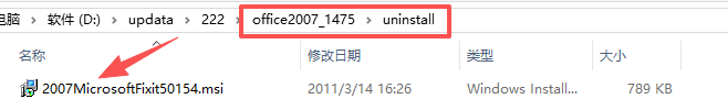 1、使用官方卸载软件,注意路径,随后直接双击运行“2007MicrosoftFixit50154.msi”该程序,若出现问题弹出,可以向下滑动页面查看。