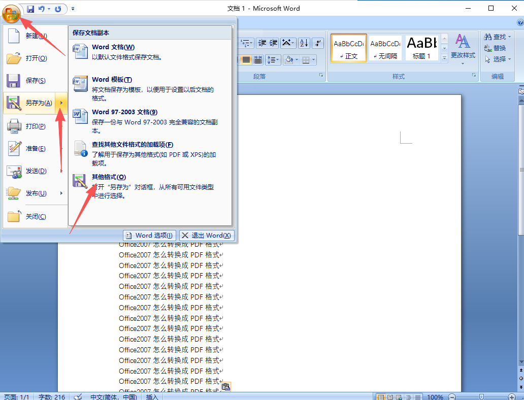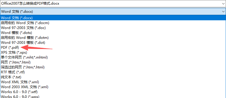 1、直接来说,有的word2007可以直接点击Office按钮里的另存为那里有“PDF或XPS”,或者“其他格式”里有: