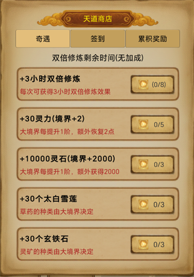 5、可通过天道商店获得灵力。
