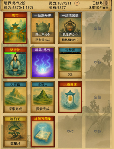 提升实力的方式也很多样化,比如用山露花直接加修为,或者通过炼化灵气来增强属性,还有不同的功法能提供各种防御和攻击加成。天道商店的存在也让资源获取更方便了。