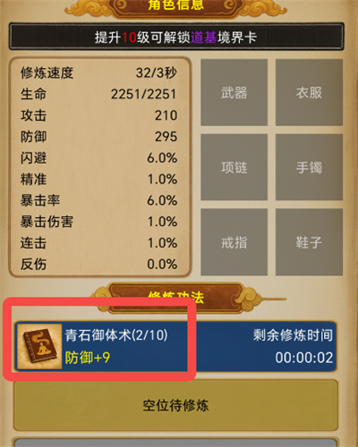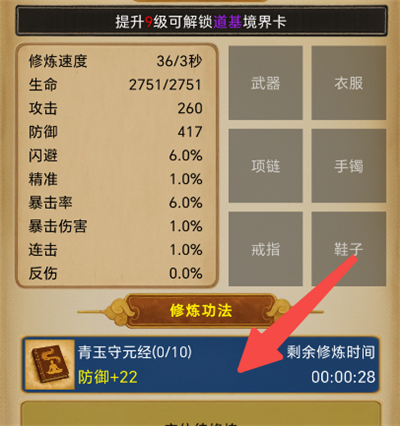 4、修炼不同的功法可提升对应防御、攻击属性。
