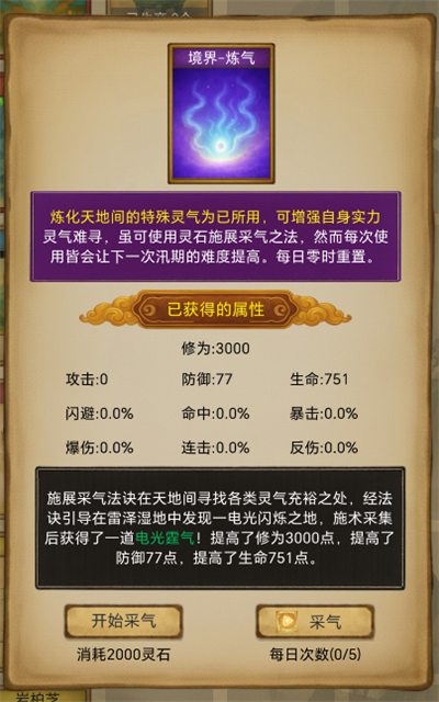 2、每次突破境界时,可恢复一定灵力,境界越高,突破时获得的灵力越高。