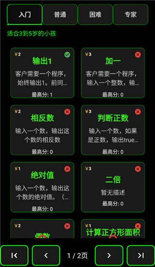 四种难度任务挑战:入门 → 普通 → 困难 → 专家