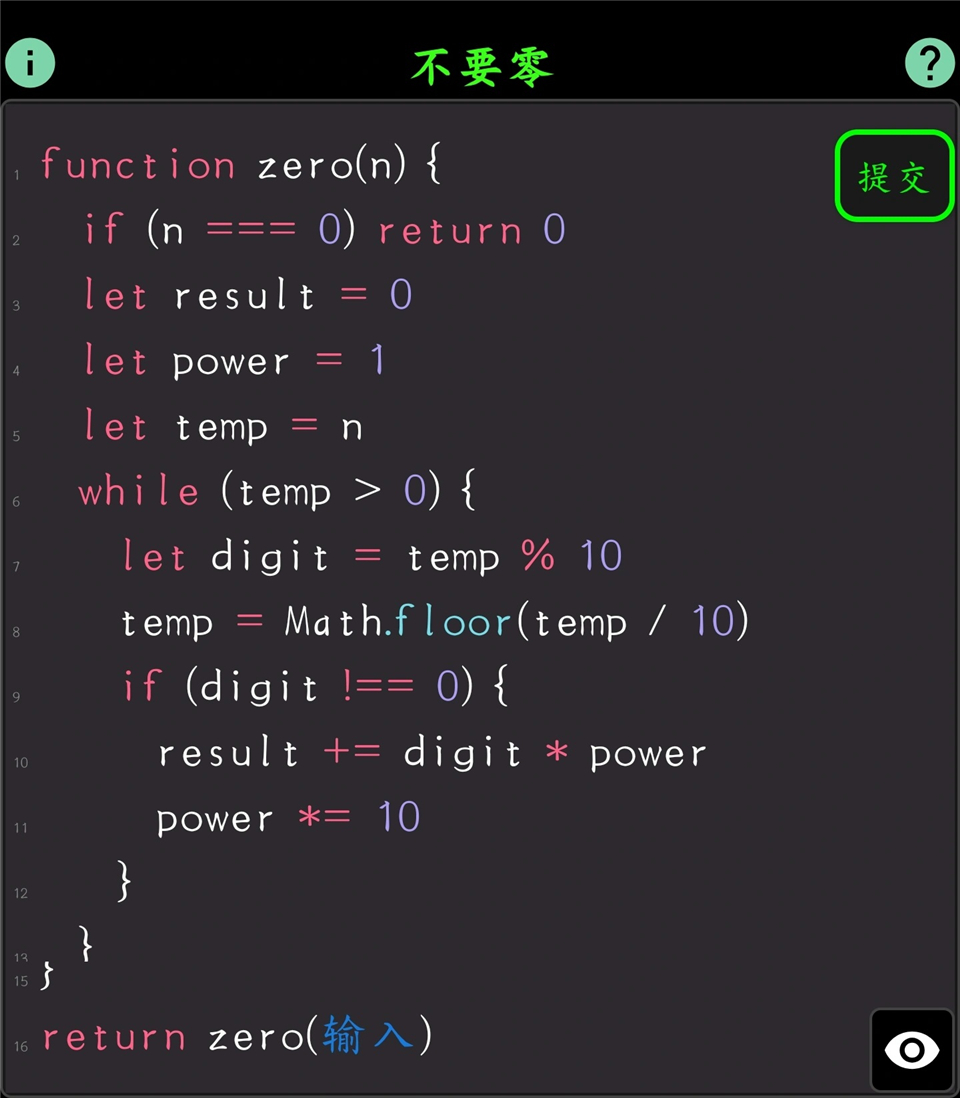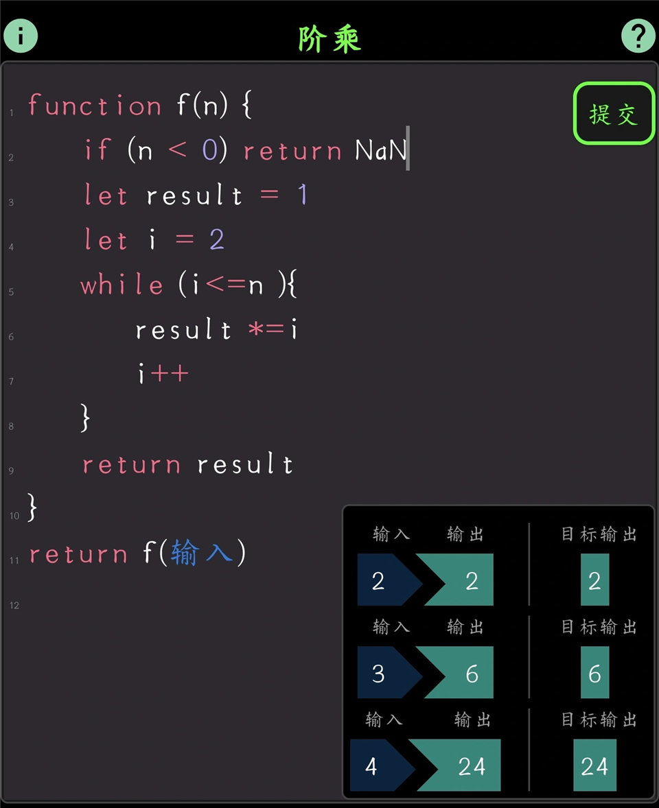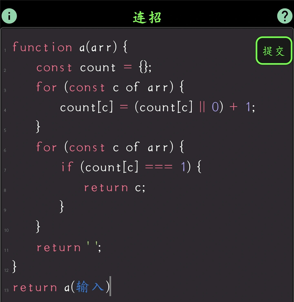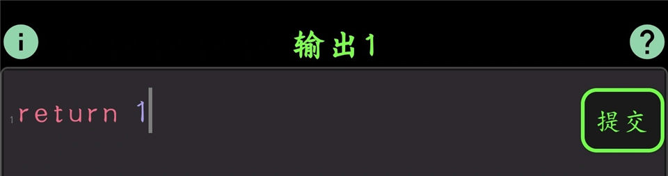 第一关只让你习惯两件事:输出靠 return,不是print或者console.log;游戏键盘里没有分号。